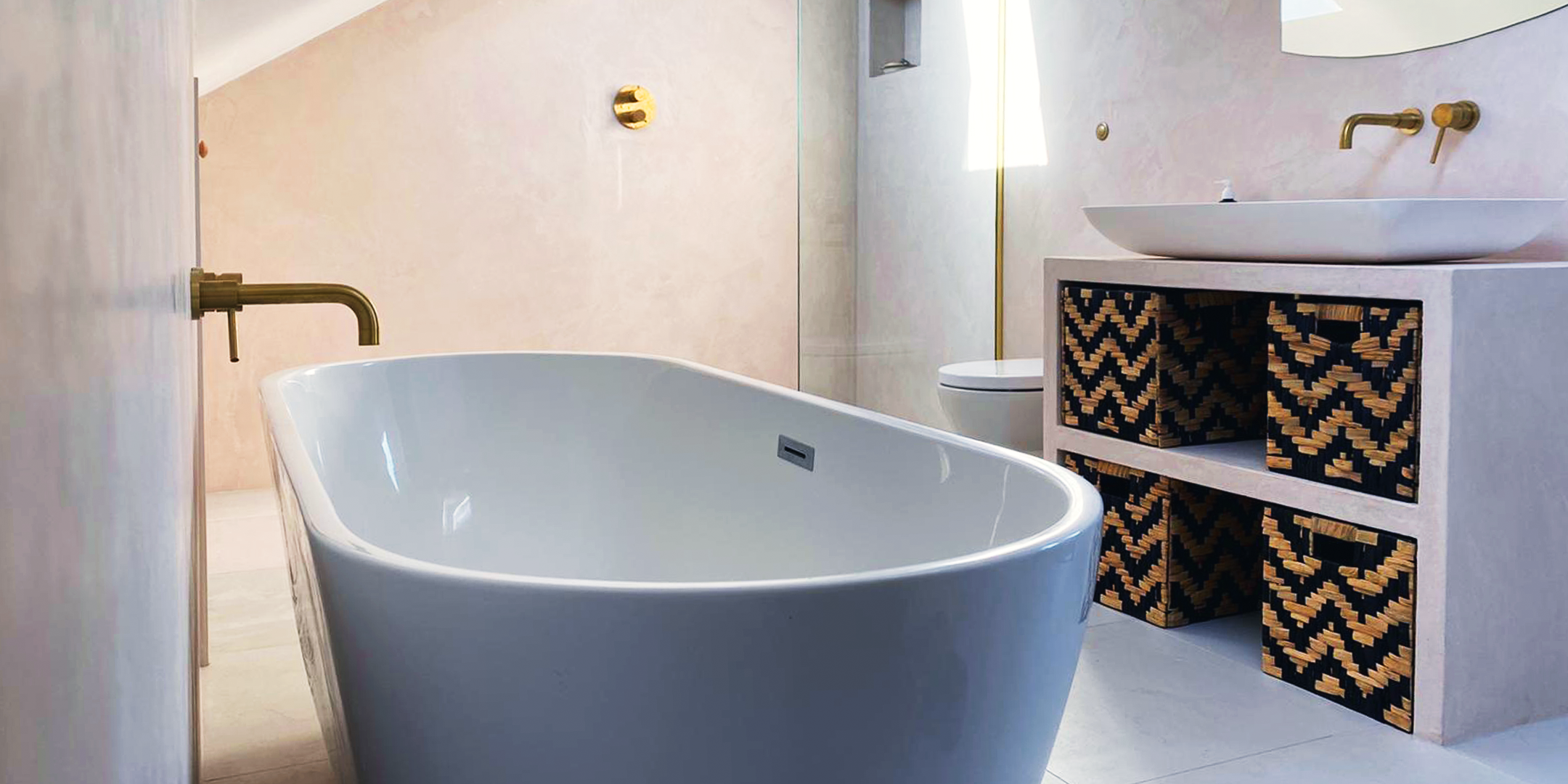 Braemar Avenue.  Master bathroom and Loft refurbishment.  Custom made vanity unit.  Morrocan Tadelakt finish.