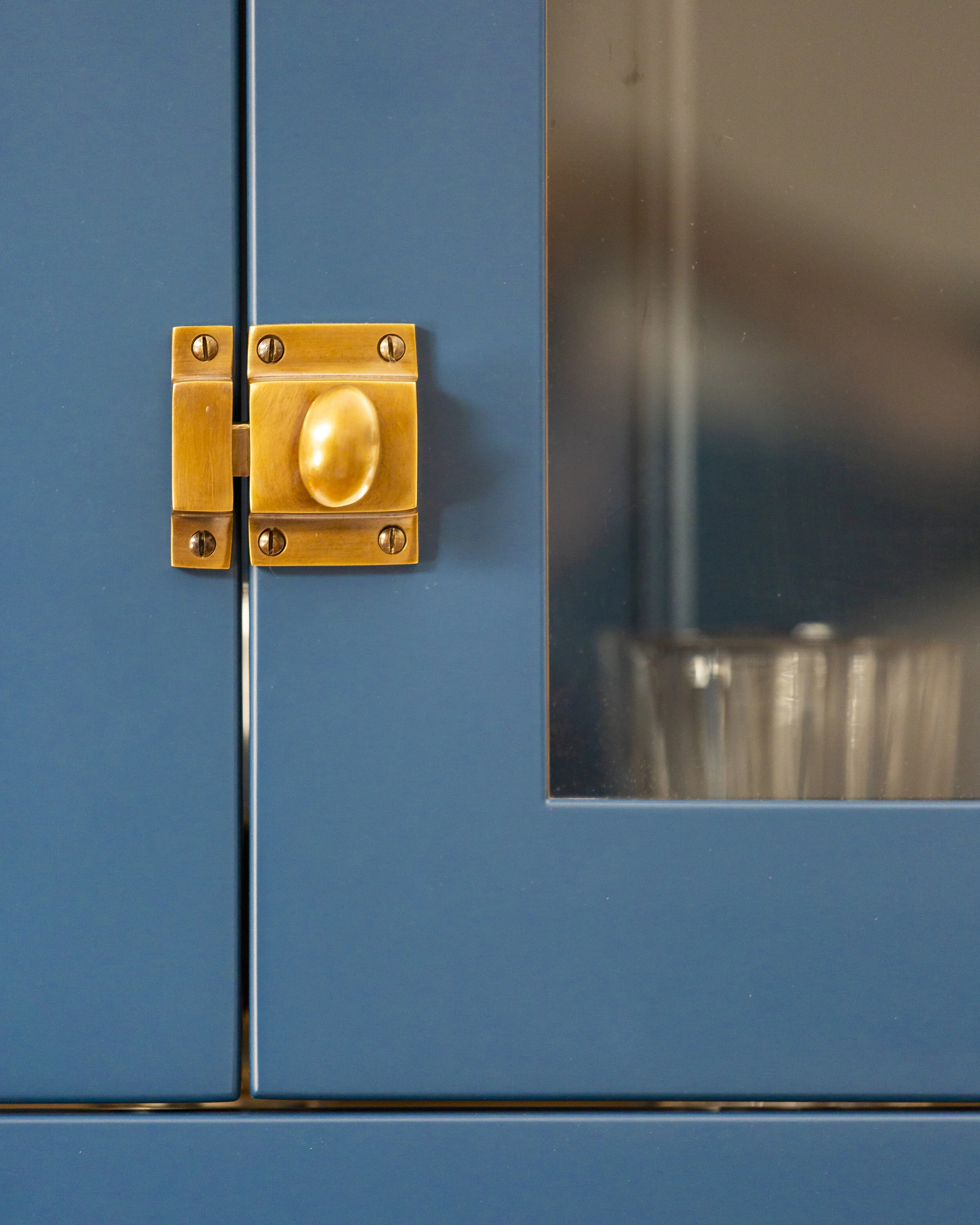 Scarborough Rd.  Boiler cupboard.  Farrow & Ball Wevet.  Push to open doors.  Simple aestethic.